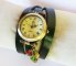 Montre bracelet en cuir style vintage aux couleurs Rasta pour les amateurs de musique Reggae.