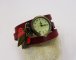 Montre bracelet en cuir rouge style vintage décoré de sequins et de breloques Feuilles.