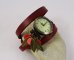 Le cadran de montre est décoré de breloques : 3 sequins ronds émaillés sur 3 tons autour de la couleur Rouge, de charmes Feuilles.