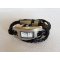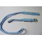Un bracelet pour montre, double tour de poignet, en simili cuir tressé couleur ciel. Il s'attache par une petite boucle style ceinture argentée.